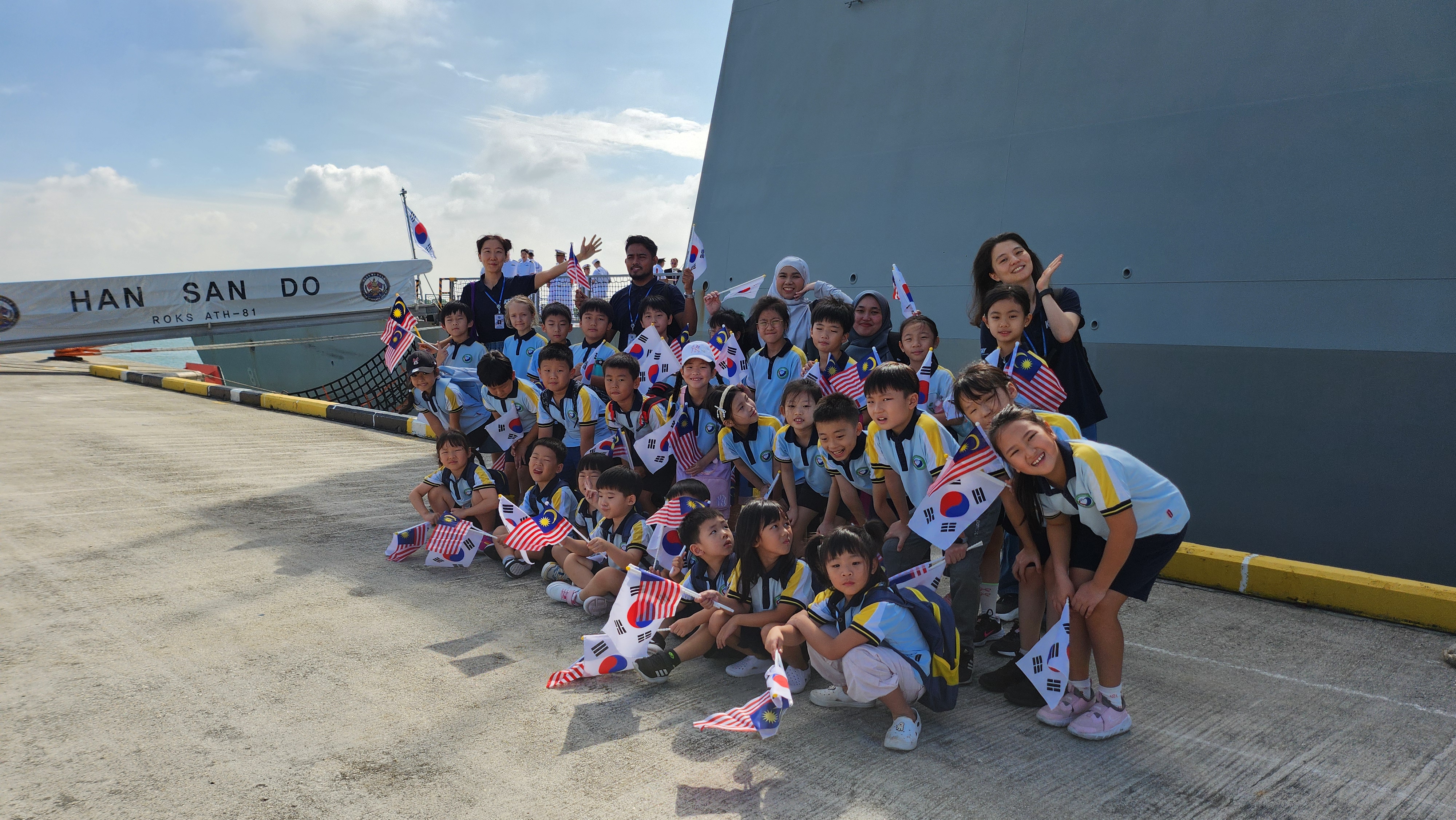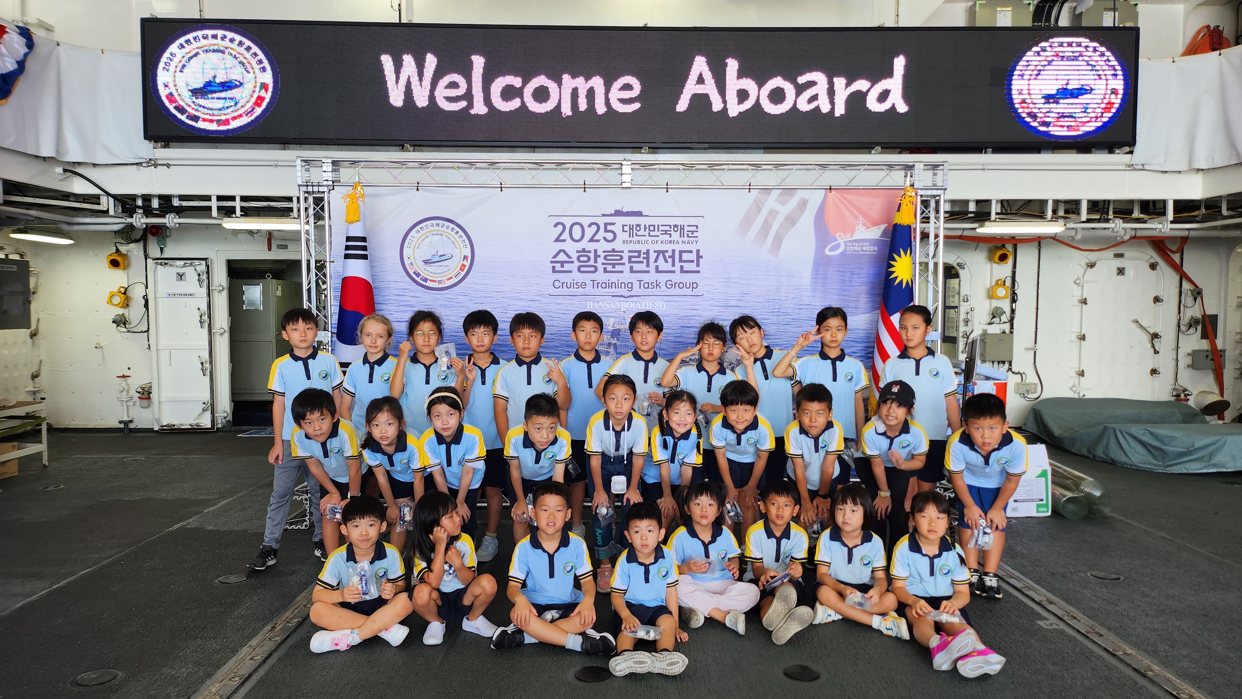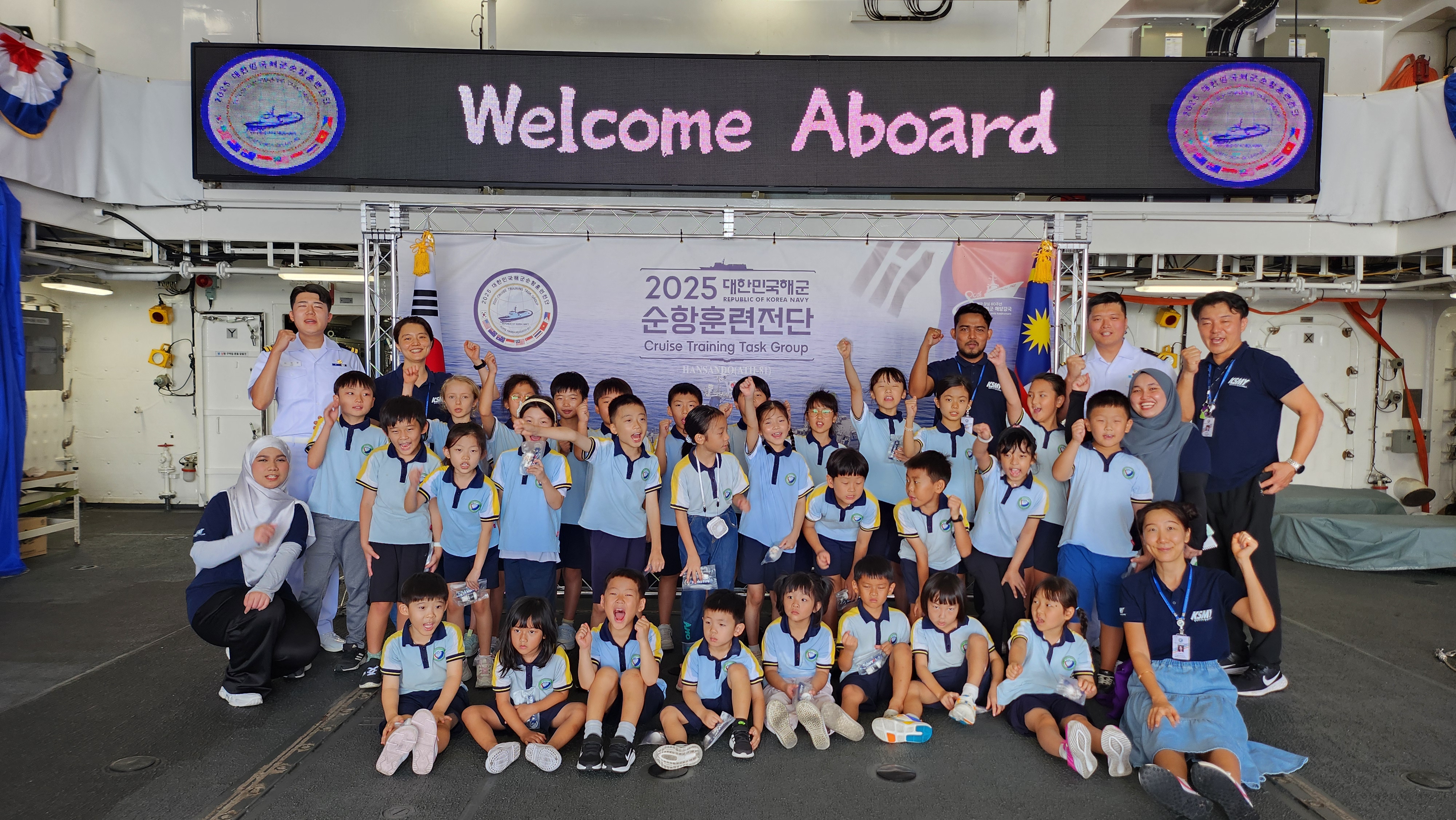 학생들은 말레이시아를 방문한 해군 순항훈련전단에 올라