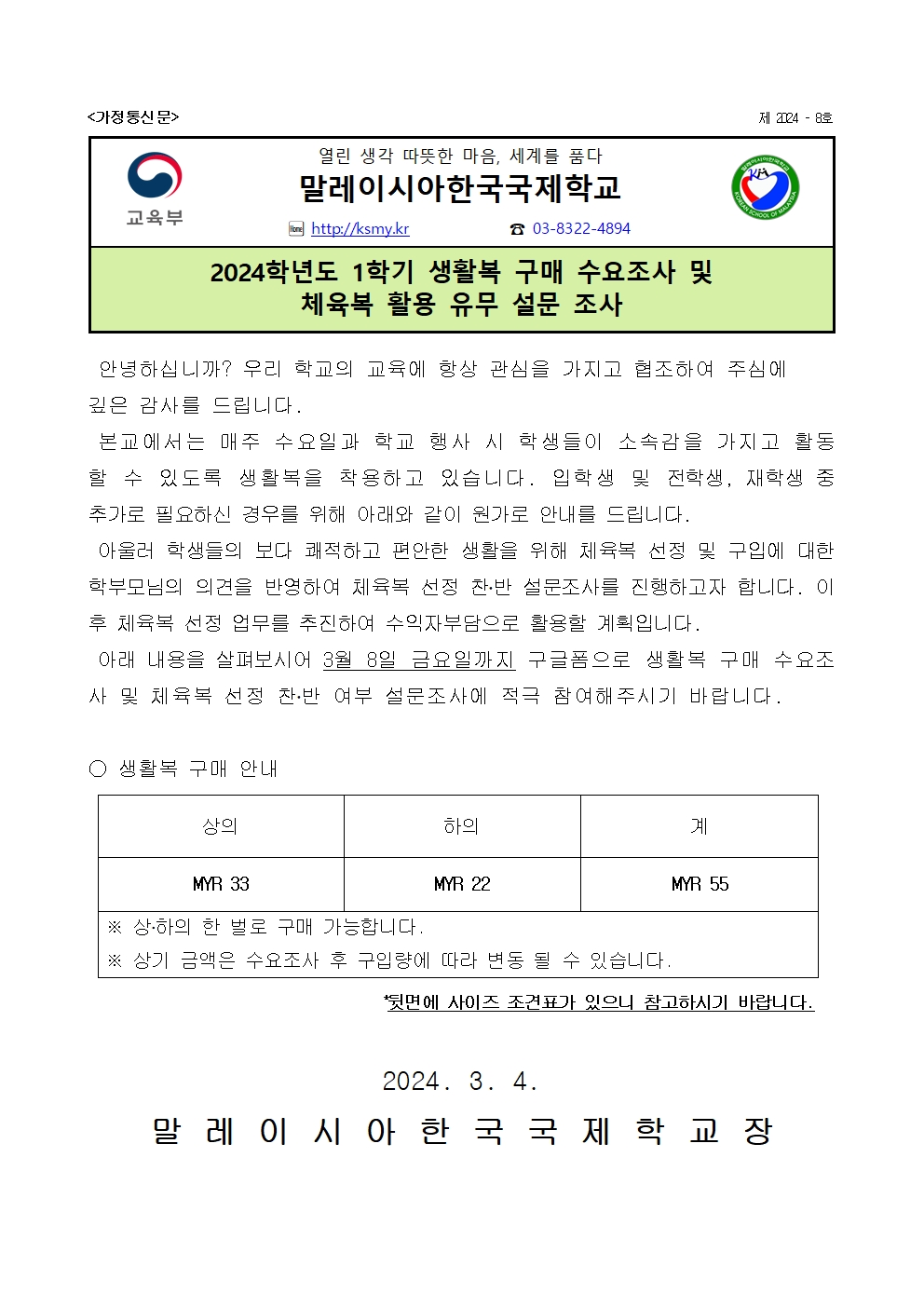 E-mail : ksmy@ksmy.kr ㅣ Tel : 행정실 +60-3-8322-4894, 070-4384-7300   교장실 03-8320-9114